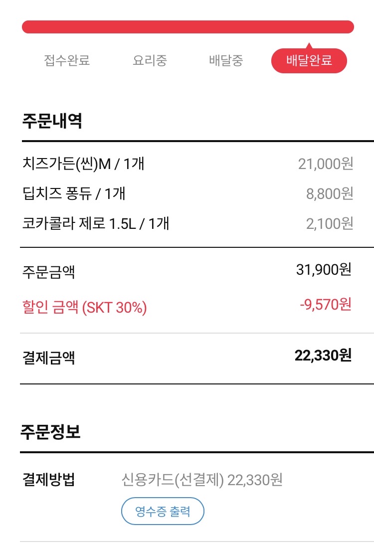 종 22,300원에 치즈가 한가득이었던 것 같다.