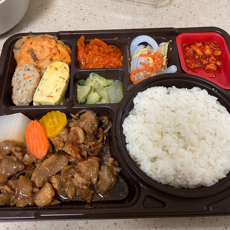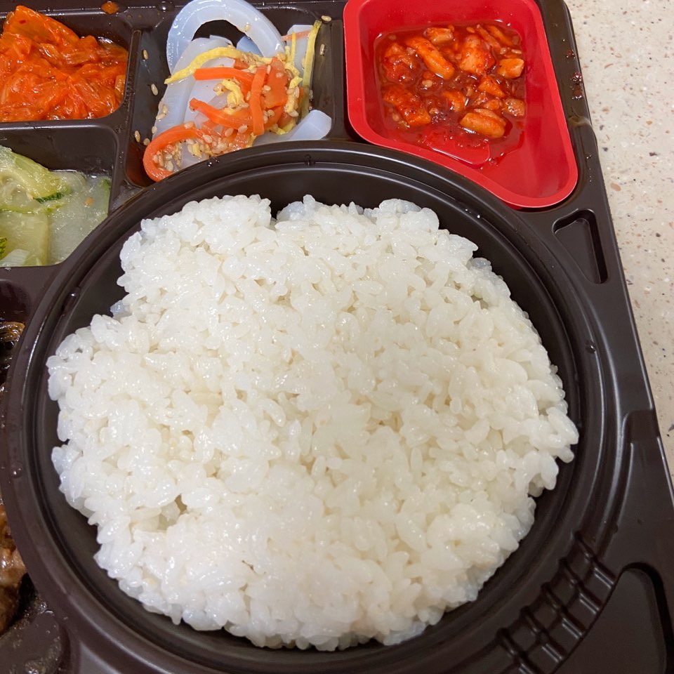 그리고 이천햅쌀로 만든 쌀밥이 가득 담겨있습니다. 반찬만큼이나 넉넉하게 들어있더라고요. 새하얀 게 고슬고슬하니 맛있었습니다. 쌀밥이 가득 들어 더욱 양이 많아 보였는데 먹으니 금방 또 없어지더라고요. 밥을 따뜻하게 데우니 좋았습니다. 밥 위에는 청포묵무침과 오징어 무 무침이었는데 깔끔하게 괜찮았습니다. 간도 적절하게 잘 되어있었고 퀄리티도 나쁘지 않았습니다. 밥반찬에 딱 적당한 듯 합니다.
